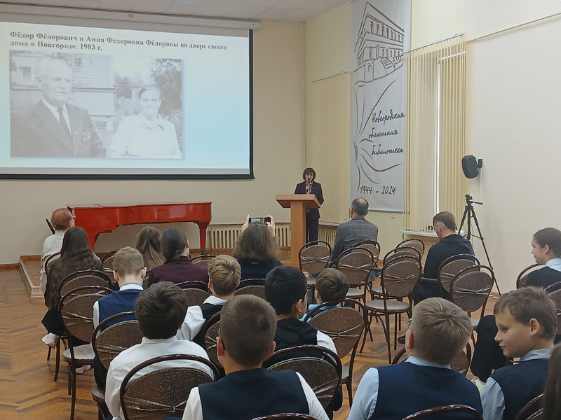 В Новгородской областной универсальной научной библиотеке при участии Государственного архива новейшей истории Новгородской области состоялась публичная лекция «Фёдор Фёдорович Фёдоров – участник битвы за Ленинград и руководитель ветеранского движения» из цикла «Солдаты Победы», приуроченного к 80-летию Победы в Великой Отечественной войне.