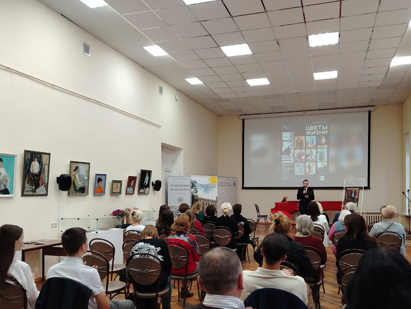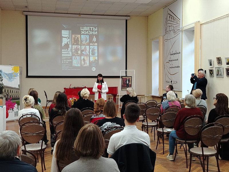 В читальном зале Новгородской областной универсальной научной библиотеки состоялось открытие выставки Елены Шишкиной "Цветы жизни". На полотнах художницы - нежные образы цветов и портреты дорогих сердцу людей.