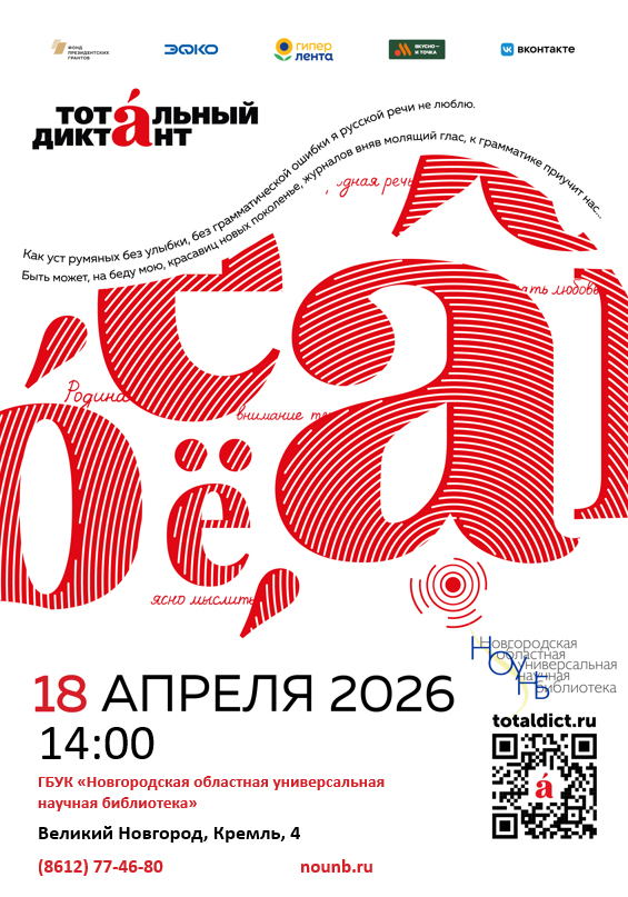 Тотальный диктант18 апреля в 14.00 Новгородская областная универсальная научная библиотека приглашает жителей Великого Новгорода принять участие в ежегодной просветительской акции «Тотальный диктант».
