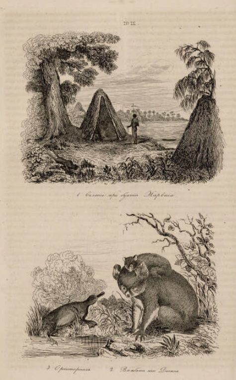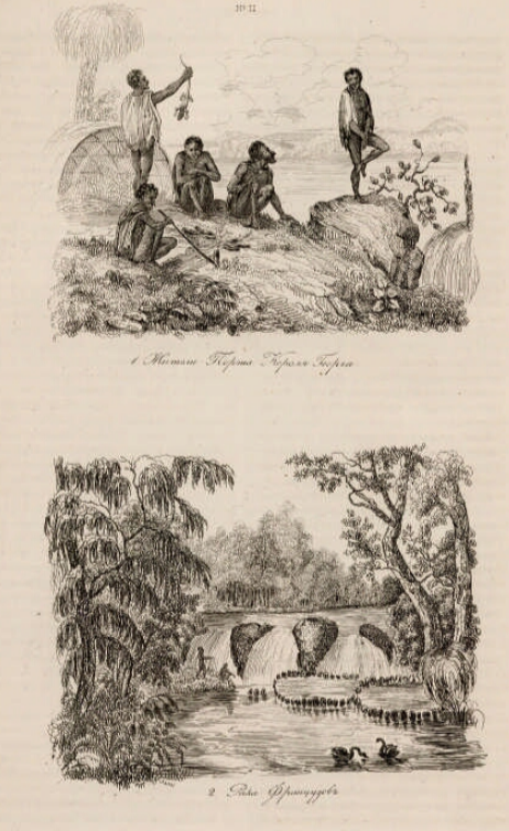 В книге французского путешественника Дюмон-Дюрвиля «Путешествие вокруг света, составленное из путешествий и открытий Магеллана, Тасмана, Дэмпира... и пр.» представлены карты и многочисленные собрания изображений, гравированных на меди, с рисунками известного г. Сенсона, рисовальщика, совершившего путешествие с Дюмон-Дюрвилем на Астролябии.