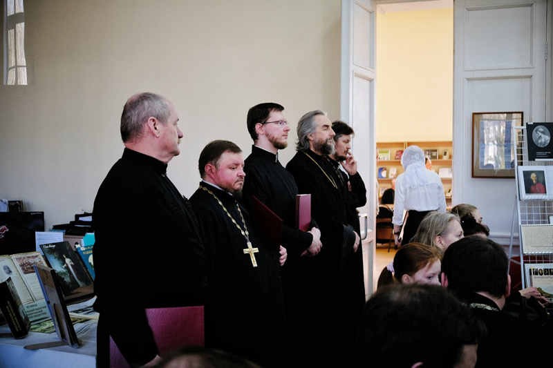 С приветственным словом к собравшимся обратился председатель Отдела по религиозному просвещению и катехизации Новгородской епархии протоиерей Александр Ранне. От имени митрополита Льва он поздравил собравшихся с открытием Дней православной книги, а также напомнил о знаменательной дате — накануне, 14 марта, исполнилось 50 лет архиерейской хиротонии Святейшего Патриарха Московского и всея Руси Кирилла.