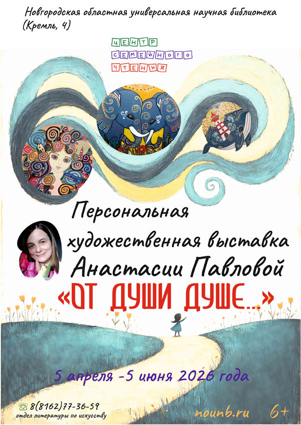 Персональная художественная выставка Анастасии Павловой «От души душе…»В Центре семейного чтения Новгородской областной универсальной научной библиотеки работает персональная художественная выставка Анастасии Павловой «От души душе...».